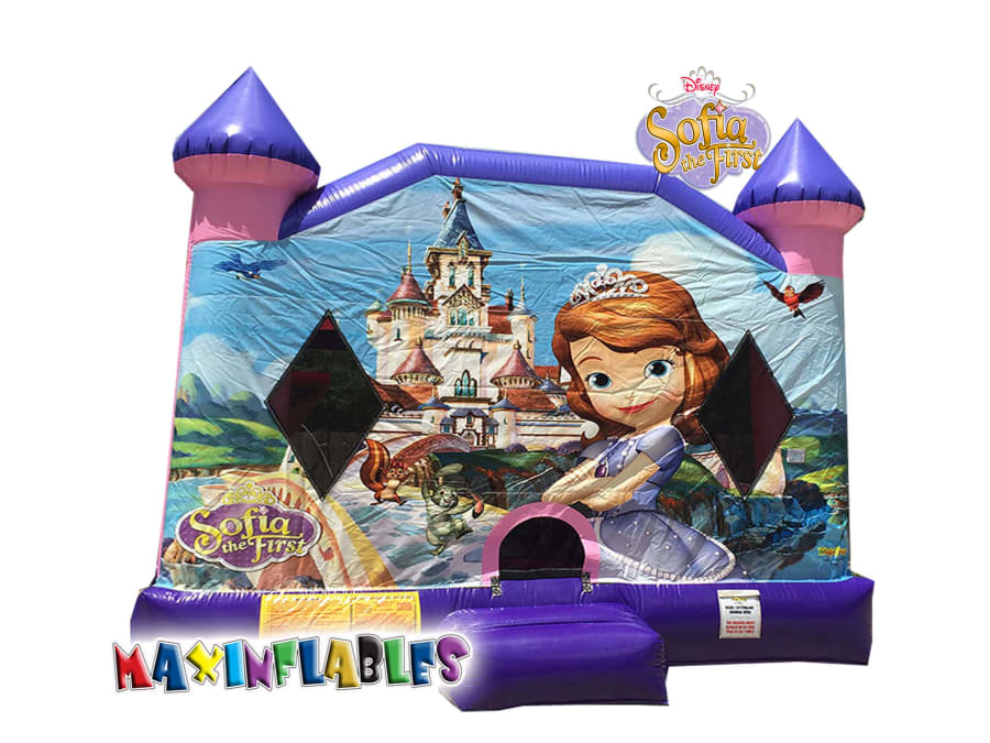 Planning to have a Sofia the First birthday party? Rent our Sofia the First bouncy castle which features Princess Sofia, Clover, Robin, and Mia. Children of all ages will be overjoyed as they jump and tumble the day away in this 13' x 13' beautiful pink and purple inflatable bounce house. Ideal for all ages, we recommend this inflatable for Sofia the First birthday parties, school events, church gatherings, family get-togethers, and more. This affordable inflatable entertainment can fit 8-12 kids at a time for hours of engaging fun. On-time delivery included with all our Austin party rentals. Let Sky High help you create a party fit for royalty!
