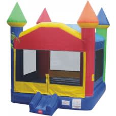 The Rainbow Castle Moonwalk is suitable for kids that are 11 years of age and younger. This, and many other of our moonwalks, can be set up indoors, on grass, even hard surfaces if enough notice is given. We ask for a “heads up” so we bring the proper equipment to secure the moonwalk. The Royal Castle Moonwalk measures 15’Lx15’Wx17’H but we do ask that the customer provide a total area of at least 17’Lx19’Wx17’H in order to ensure the moonwalk fits appropriately