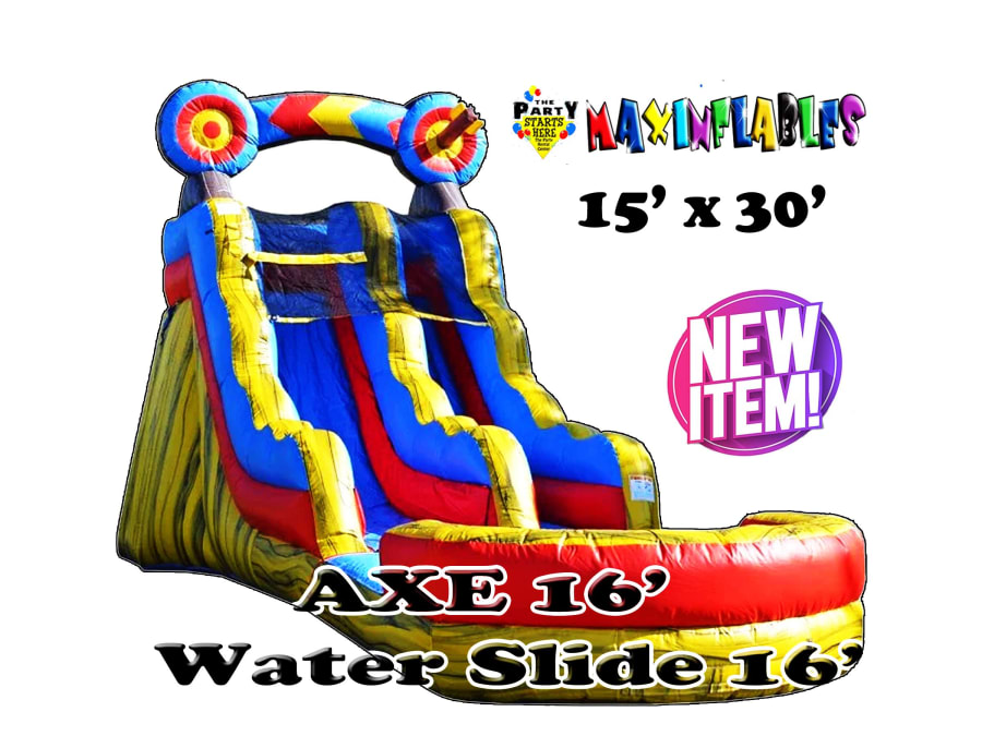 Book your 15x30 Axe Water Slide today and turn your party into a splash-tastic event! Contact us now to reserve and find out how we can make your celebration truly special! 🚚🎈