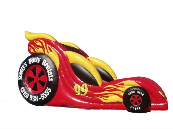 Add our Double Racing Car Slide to the reservation for your next event and get ready for fun and laughter. This newest addition to our dry slide lineup is sure to be a big success at your party with 2 manes of climbing and sliding entertainment. The dual lane high slide will get all your guests or 12s (no matter their age) in a competitive mood, as they challenge one another to determine who can reach the bottom first. With two lanes of sliding excitement