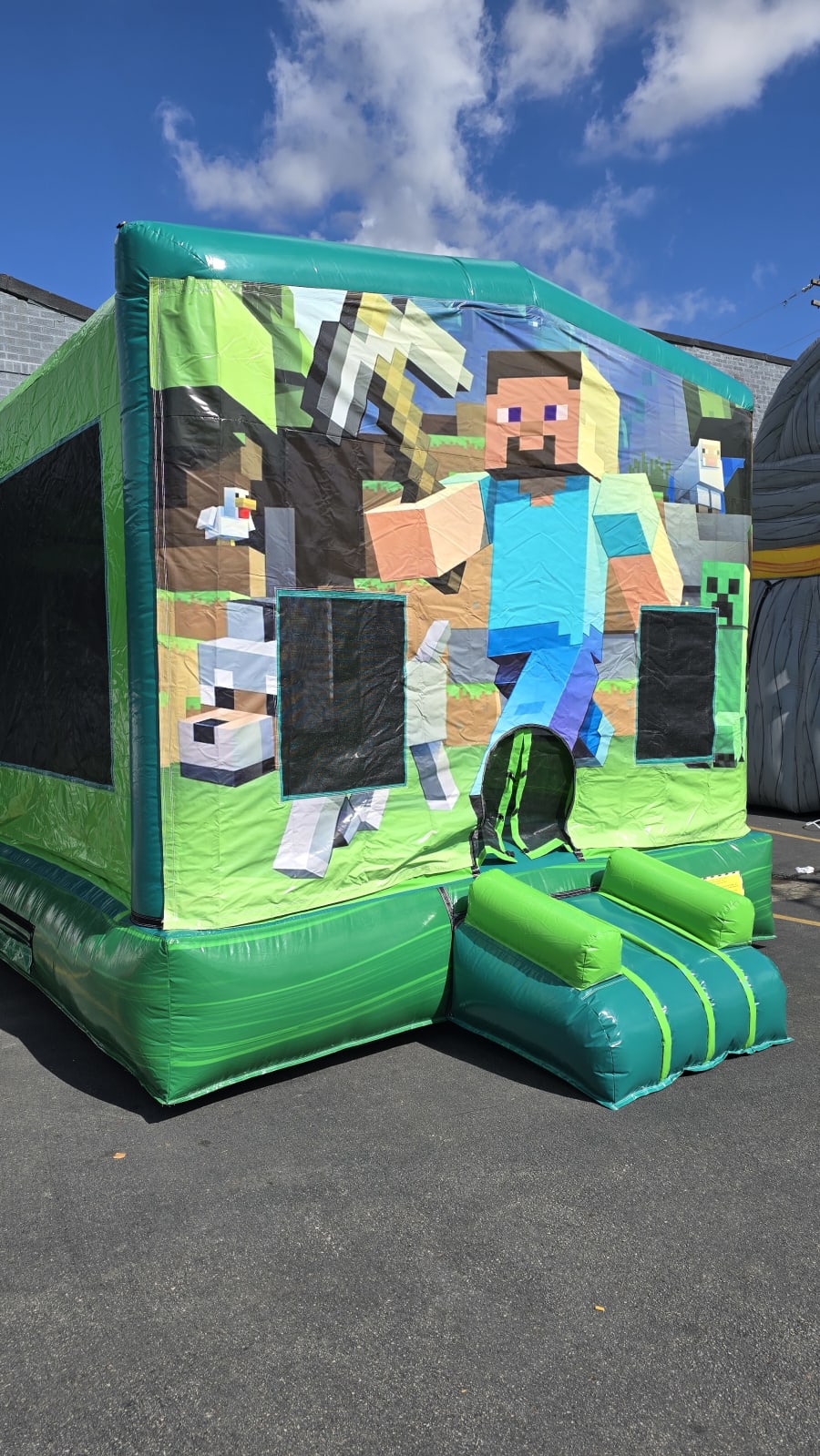 The Bounce is a standard bounce house that is inspected and approved for safety. The included safety features are netted windows for ventilation and easy access to see the kids playing inside and a covered top to prevent too much sun exposure. Whether you are planning a birthday party, block party, school or church event, or just need something for the kids to do for the day, this bounce will not disappoint. The bounce house is a crowd pleaser with plenty of room for the kids to bounce and enjoy their time. If you need something to spice up your event, look no further. This is the perfect option to add some fun.