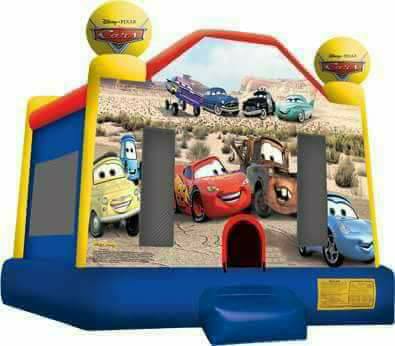 The Disney Cars Club Moonwalk can be set on grass or hard surface, whichever is requested by the customer! The bouncing area within the moonwalk is an area that measures 13’x13′