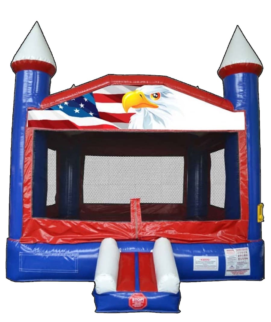 Bounce House | Party Rental & Maxinflables Inc. The Patriotic Red, White & Blue Bounce House is great for a birthday party, 4th of July party, County fair or any event where you want to show off your American Pride. This commercial quality inflatable will provide hours of jumping fun for kids and adults alike. The 3 foot ramp allows for easy entrances and exits.
