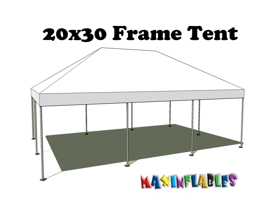 This 20'x00' frame tent has a design that provides an elegant looking and clear open floor. Its Fire Retardant, UV Resistant, Block-Out vinyl material attributes are craftily made to protect you and your guests. A 20'x30' Frame Tent accommodates 80 people for sit down dinners,