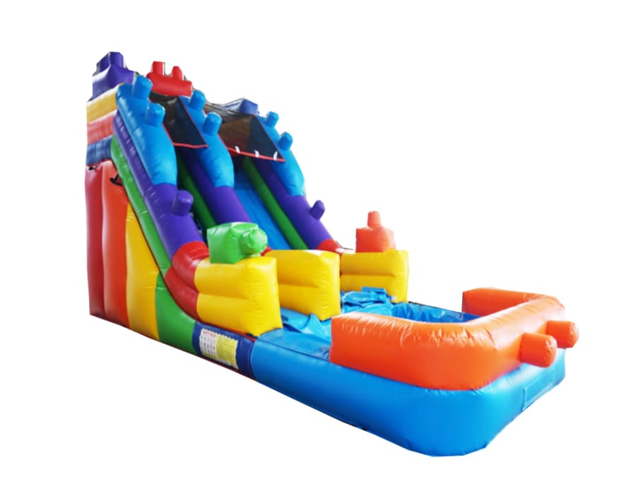 Our Lego water slide is one of our most popular units in our inventory. It has a large pool to enjoy as everyone awaits their turn for the slide. This slide comes with a water hookup to allow the water hose connection that will allow the water to trickle down the slide directly into the pool.